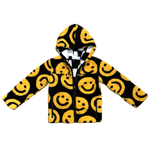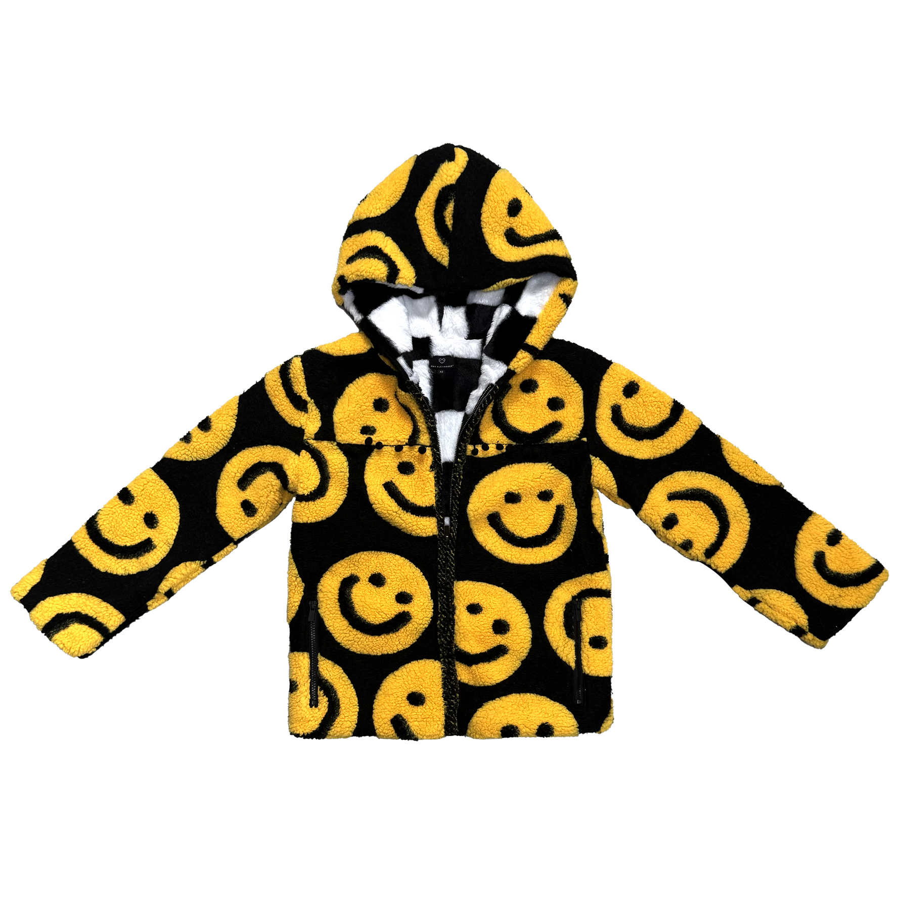 Made with thick, plush sherpa on the outside and lined with ultra-soft faux fur within, this jacket delivers an exceptionally cozy wear. Its playful oversized happy motif brings a touch of Max’s sunshine to even the chilliest day.