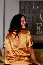 Short-sleeve button-up top with collar